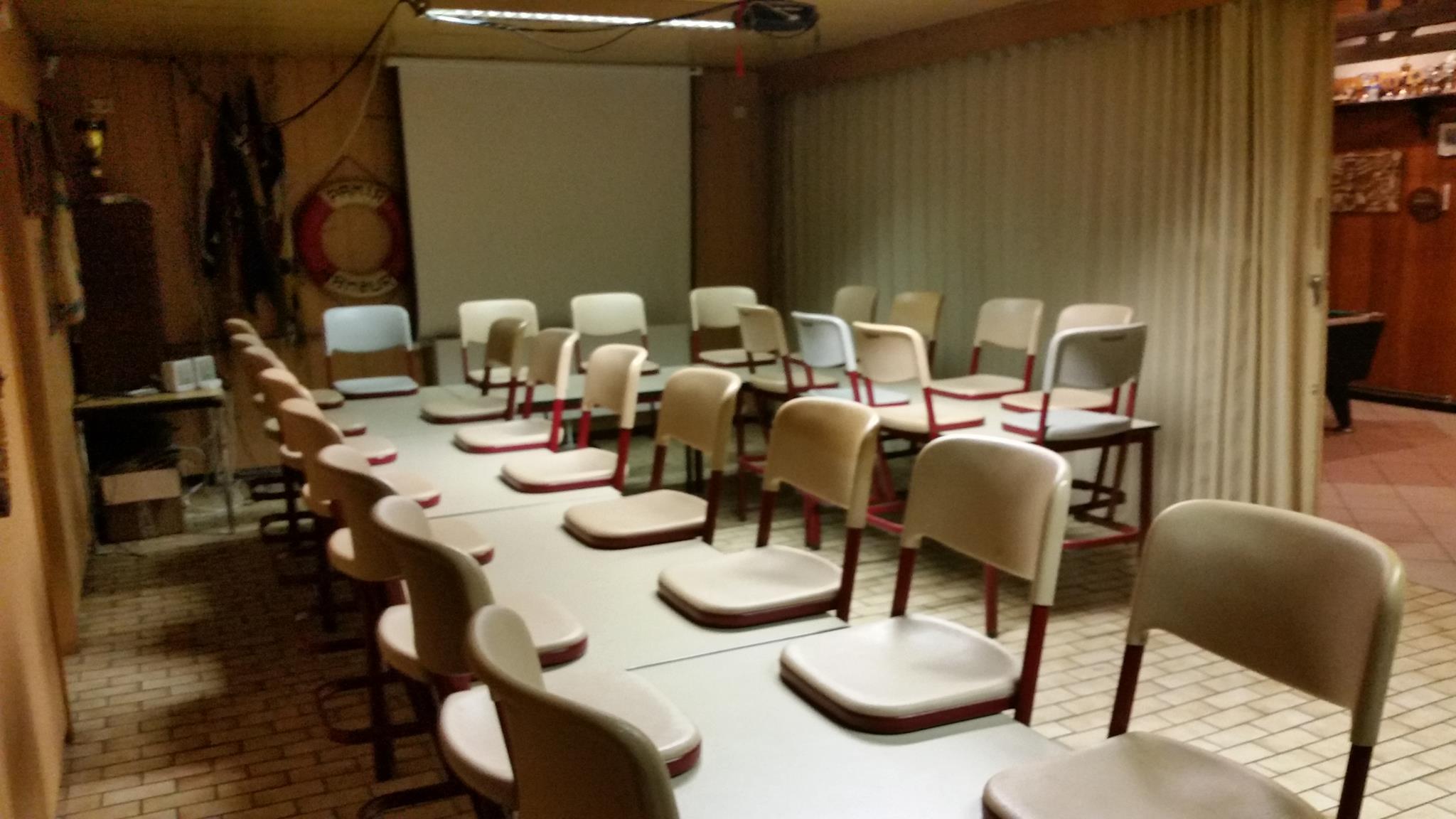 Neben einem Tanzsaal, einer großen Messe und einer voll ausgestatteten Kombüse haben wir Schlafplätze für ca. 20 Personen, die wir bei gemeinsamen Übernachtungen nutzen.